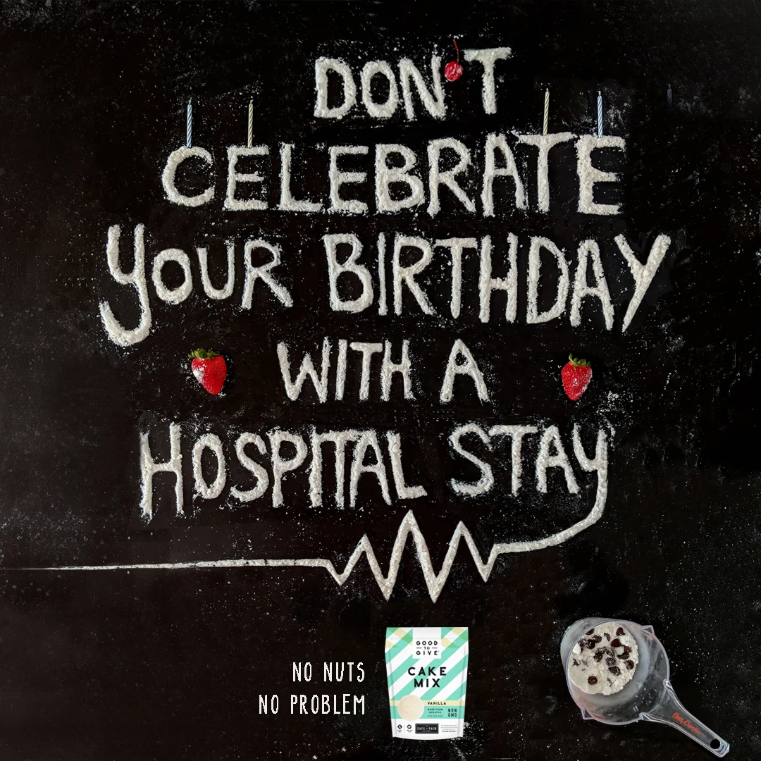 Safe & Fair’s Vanilla Cake Mix is a nut-free and allergy friendly. My partner Jake Hirsch and I came up a concept of: No one wants to ruin a celebration. Our project is headline driven, using the cake mix as the type!